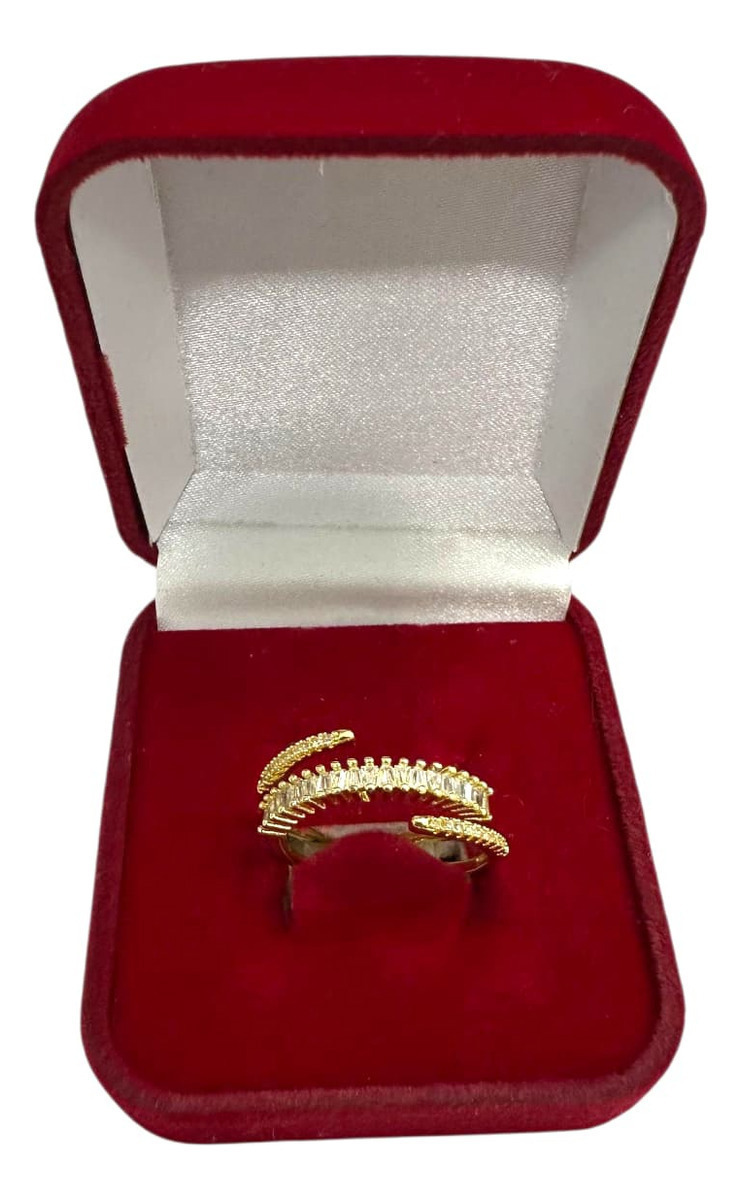 Anel Feminino Triplo Cravejado Banhado A Ouro 18k