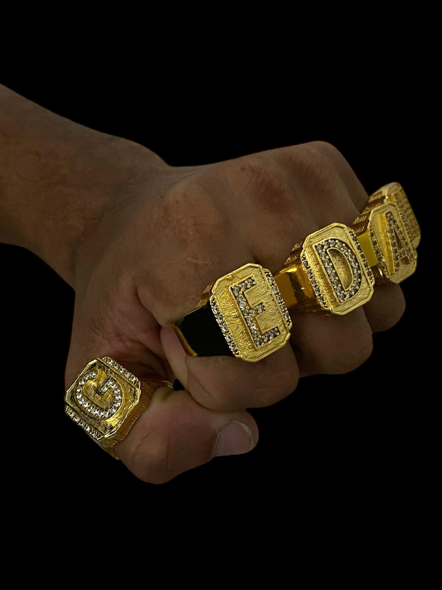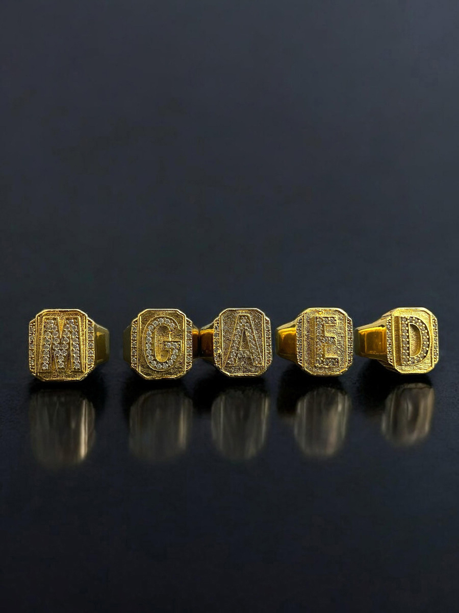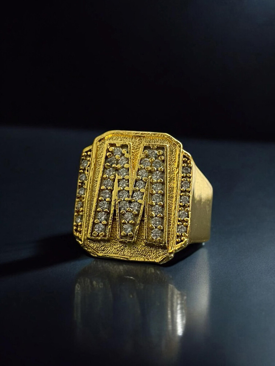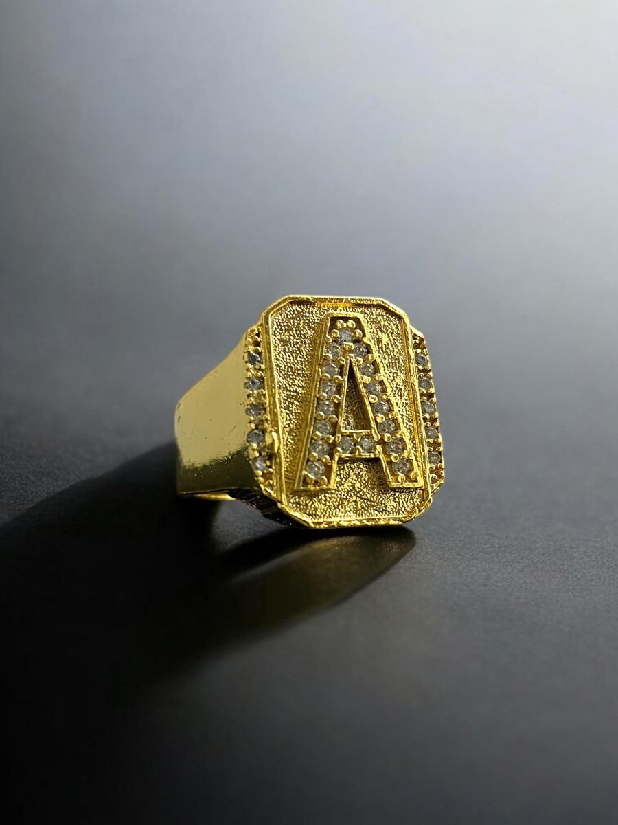 Anel Letras Cravejadas 100% Moeda Antiga