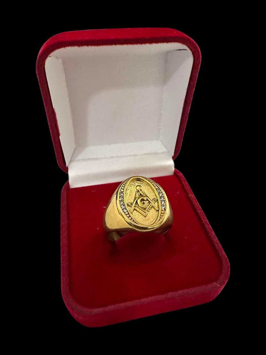 Anel Maçom Oval Com Pedras Banhado Ouro 18k