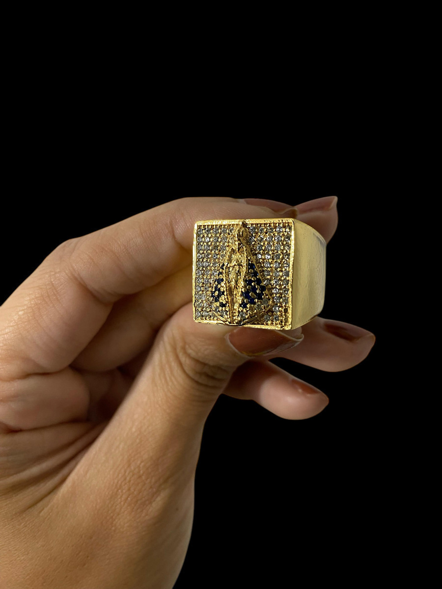 Anel Nossa Senhora Aparecida Cravejado Banhado A Ouro 18k