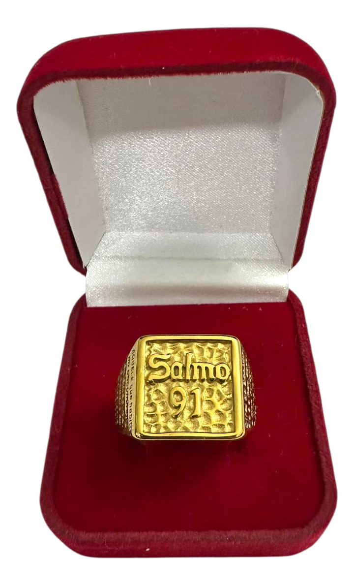 Anel Salmo 91 Oração Banhado A Ouro 18k