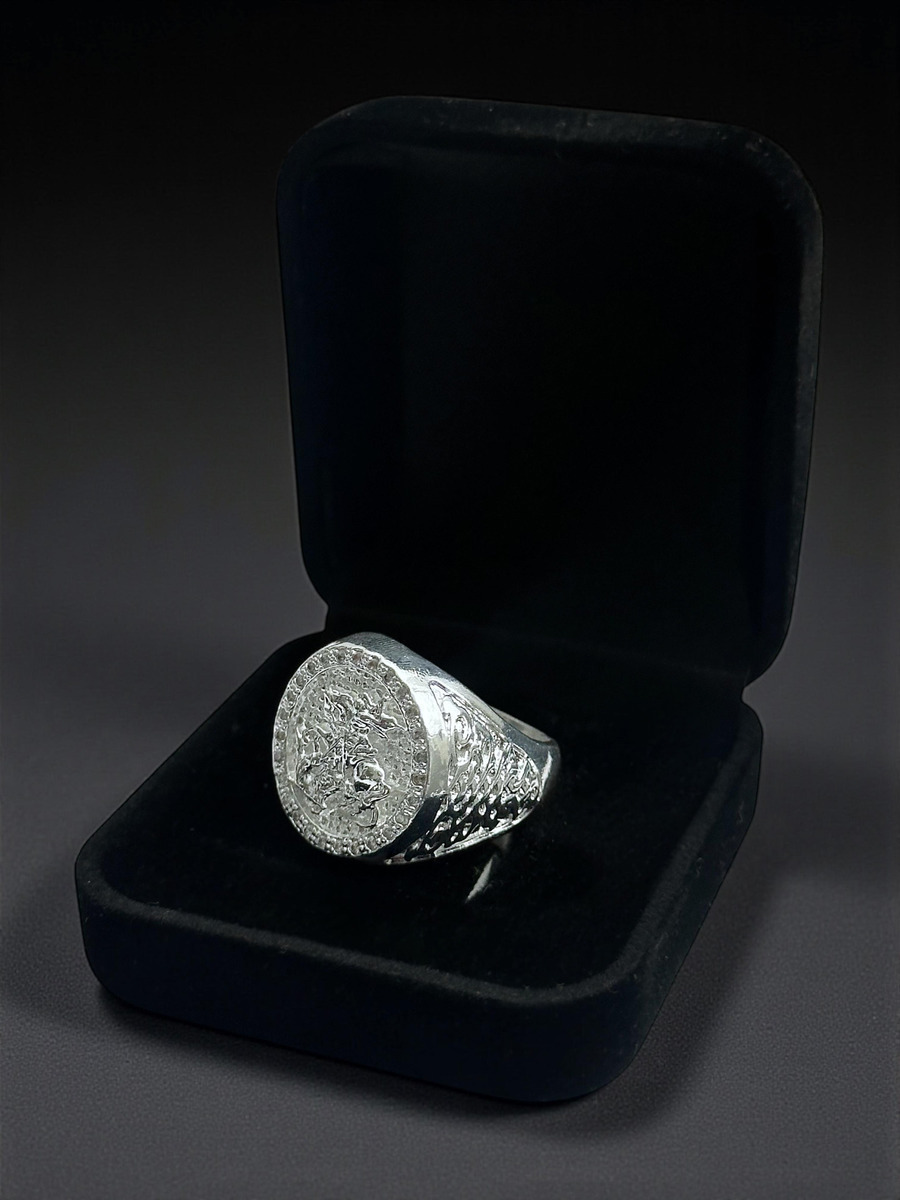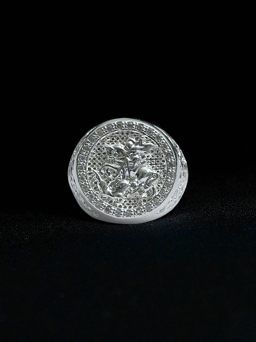 Anel São Jorge Cravejado Banhado A Prata 925