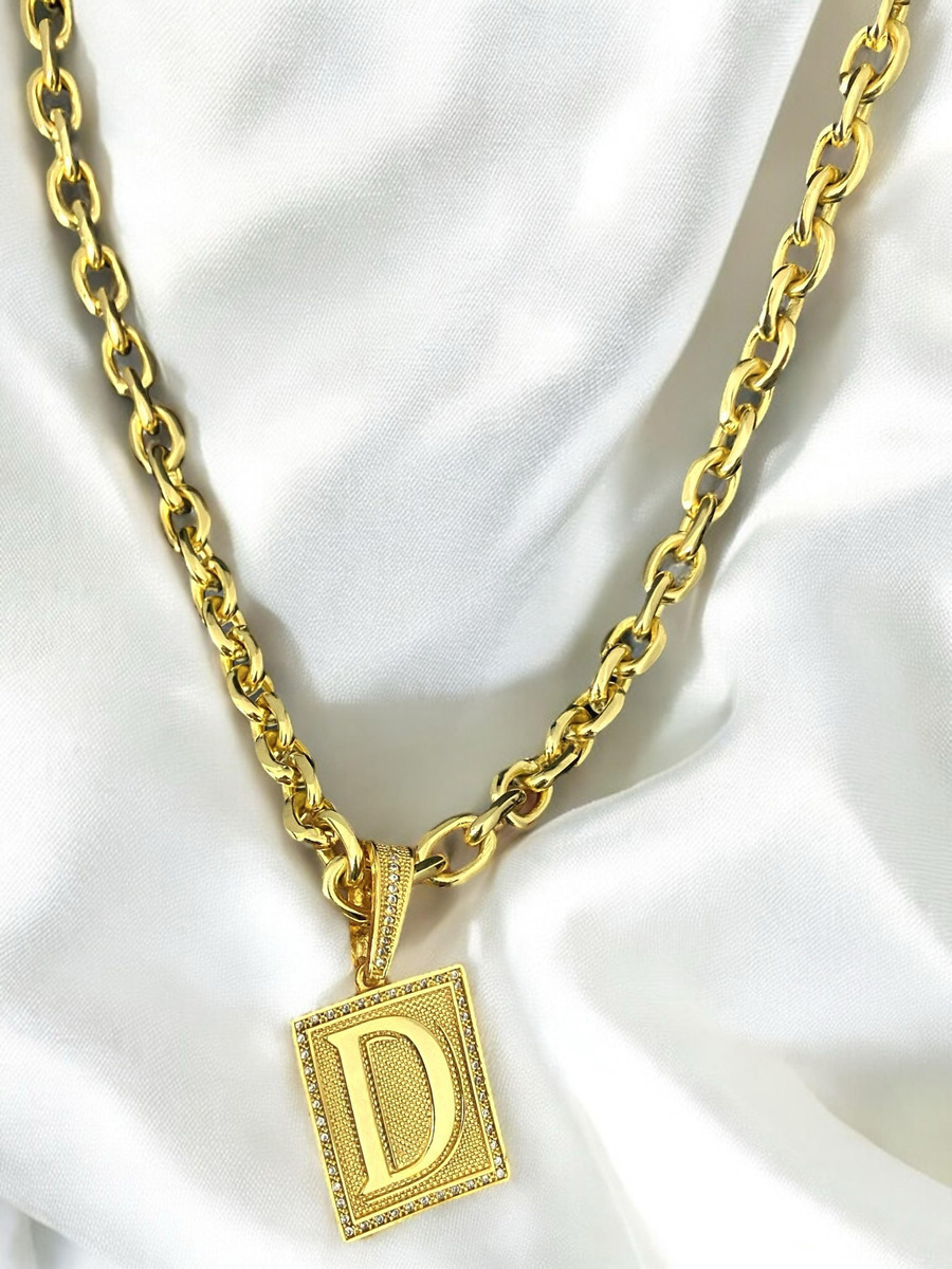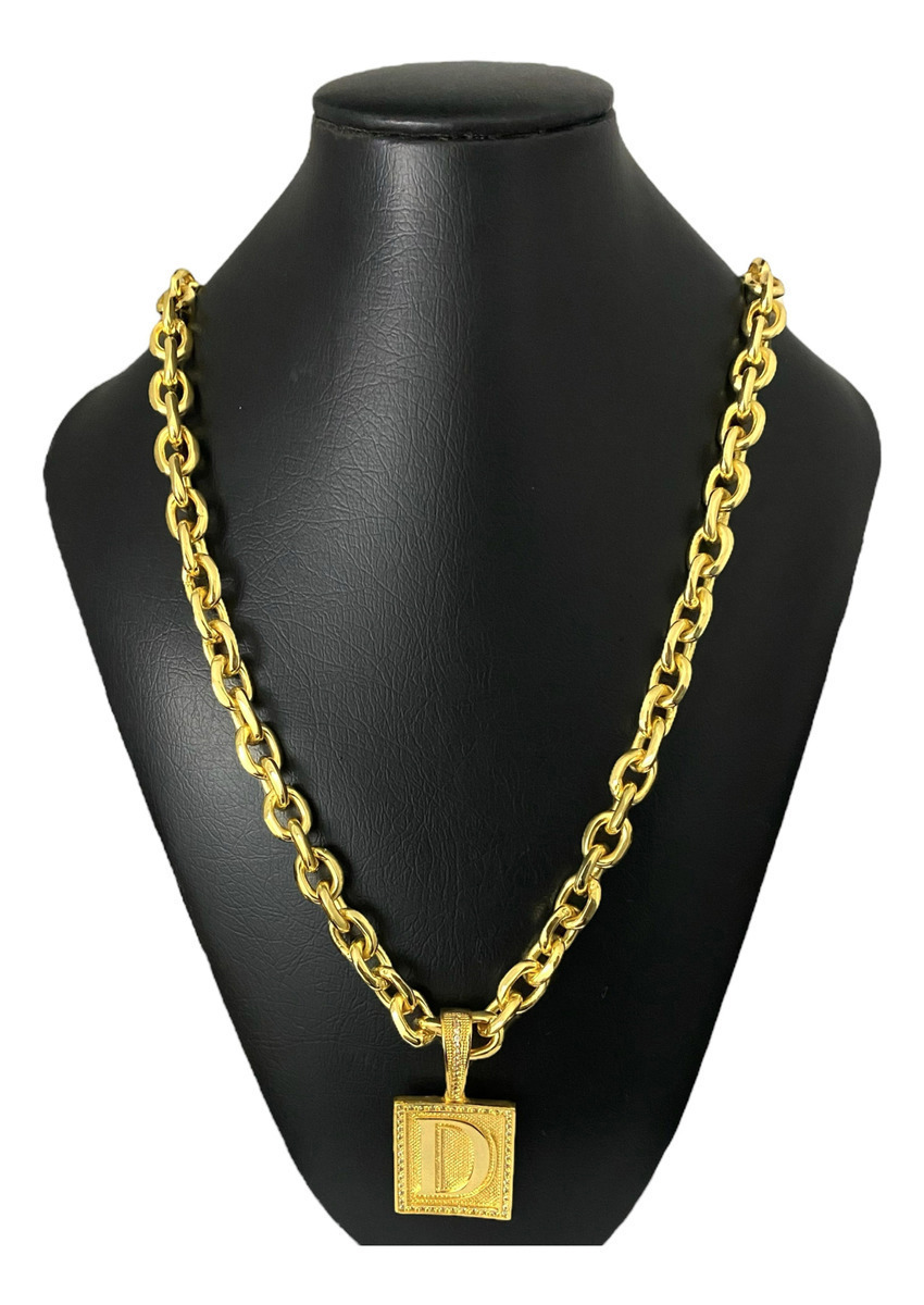 Cordão Cadeado 12mm + Pingente Letra Cravejado Banhado A Ouro 18k