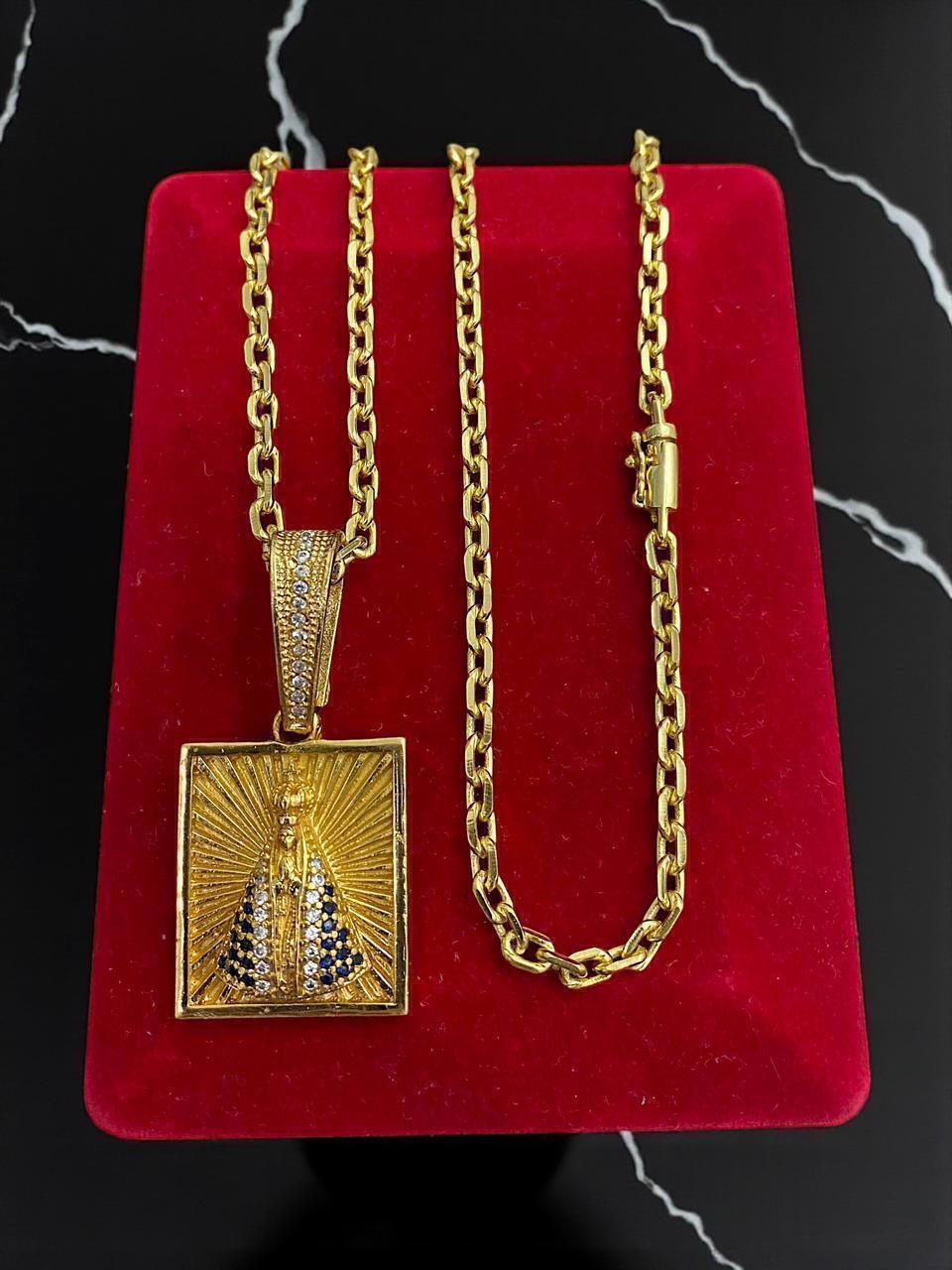 Cordão Cadeado 4mm + Pingente Santa Banhado A Ouro 18k