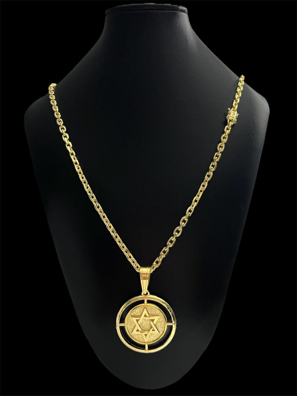 Cordão Cadeado 5mm + Pingente Estrela De Davi Arco Banhado A Ouro 18k