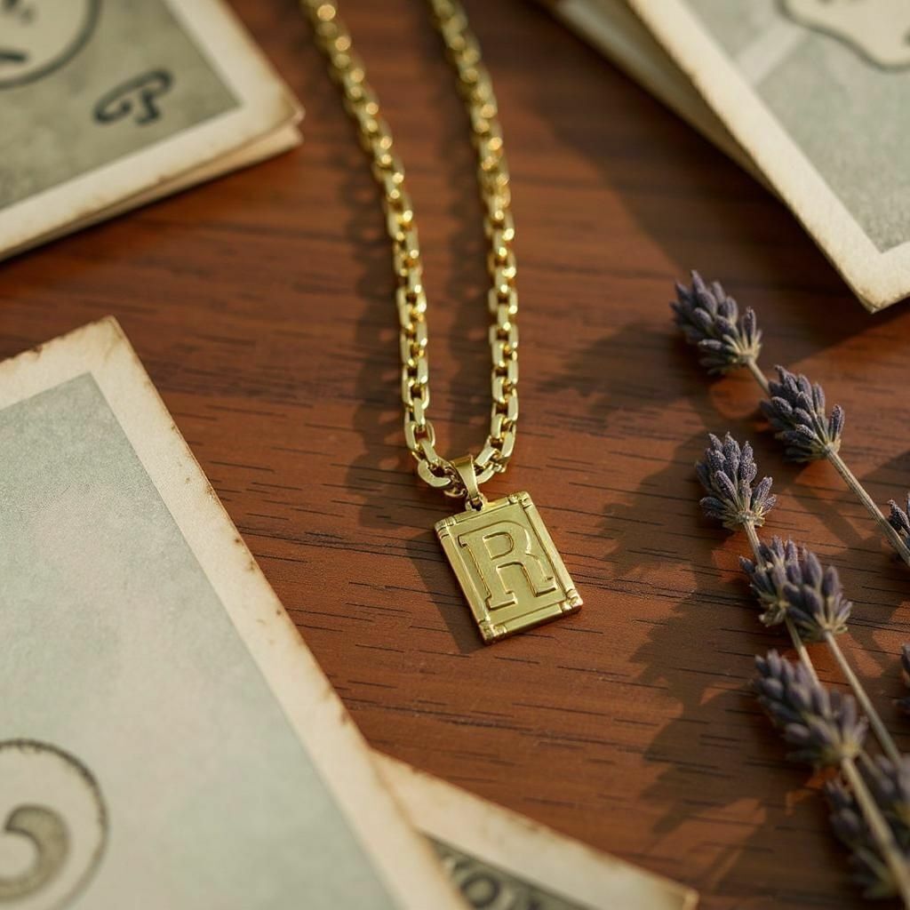 Cordão Cadeado 6mm + Pingente Letra Lisa Banhado A Ouro 18k