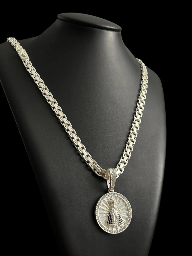 Cordão Cadeado Duplo 10mm + Ping Santa Banhada A Prata 925