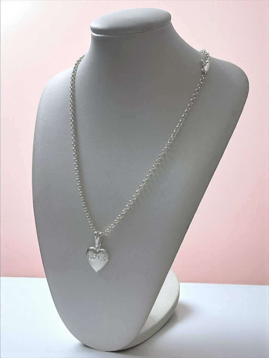 Cordão Elo Português Feminino 3mm + Pingente Coração Love Banhado A Prata