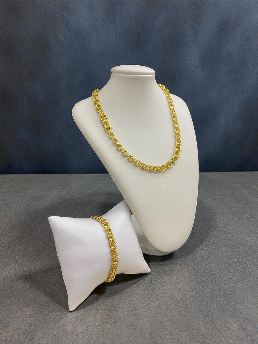 Cordão Friso 5mm + Pulseira Feminina Banhado A Ouro