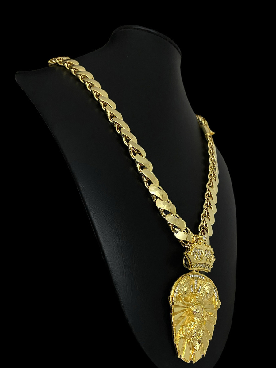Cordão Friso S 13mm + Pingente Cristo Leão Banhado A Ouro 18k