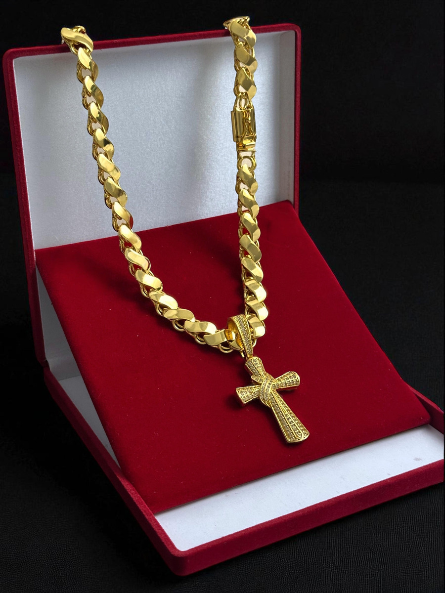 Cordão Friso S 13mm + Pingente Cruz Cravejada 100% Moeda Antiga