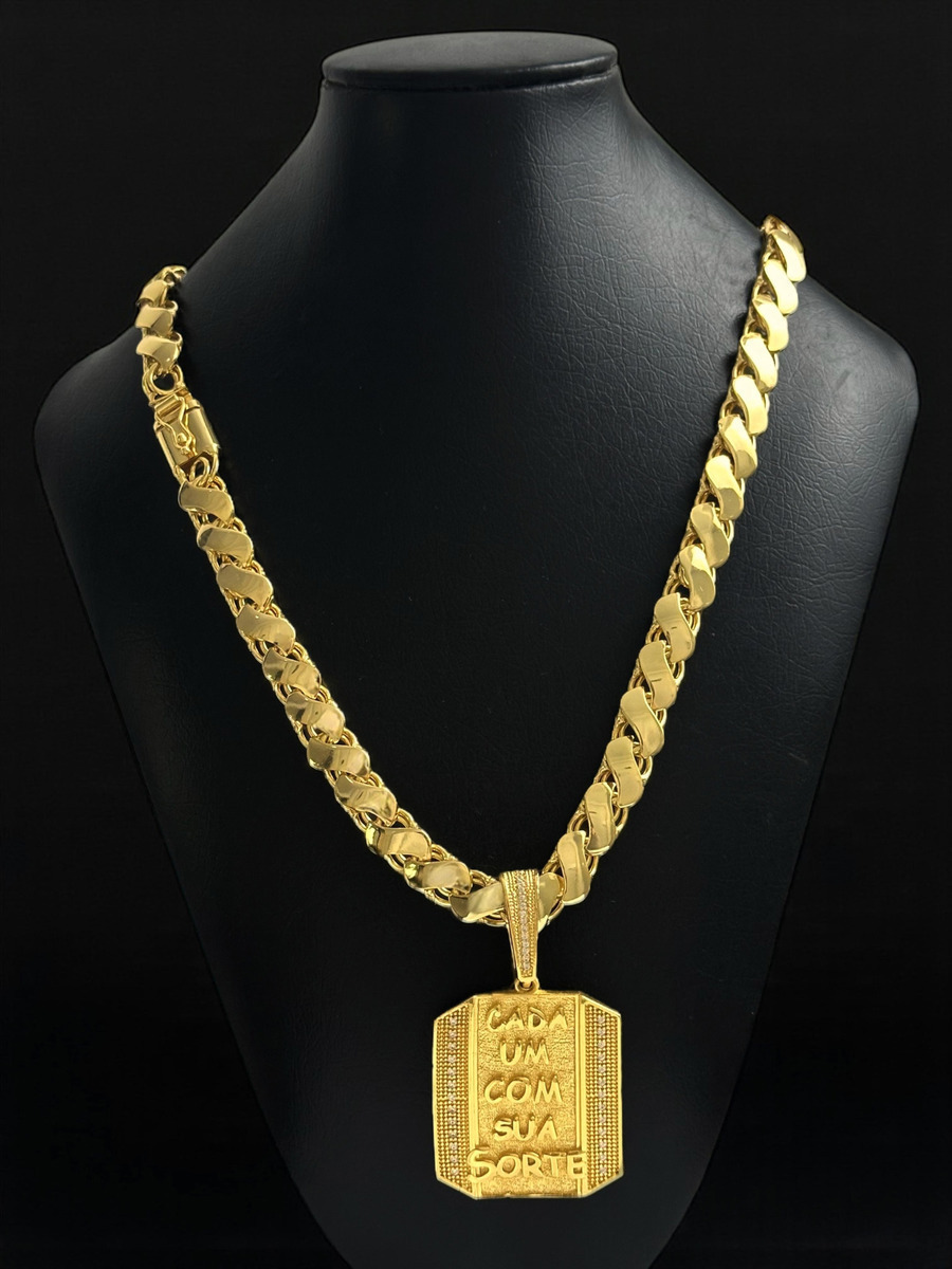 Cordão Friso S 13mm + Pingente Sorte 100% Moeda Antiga