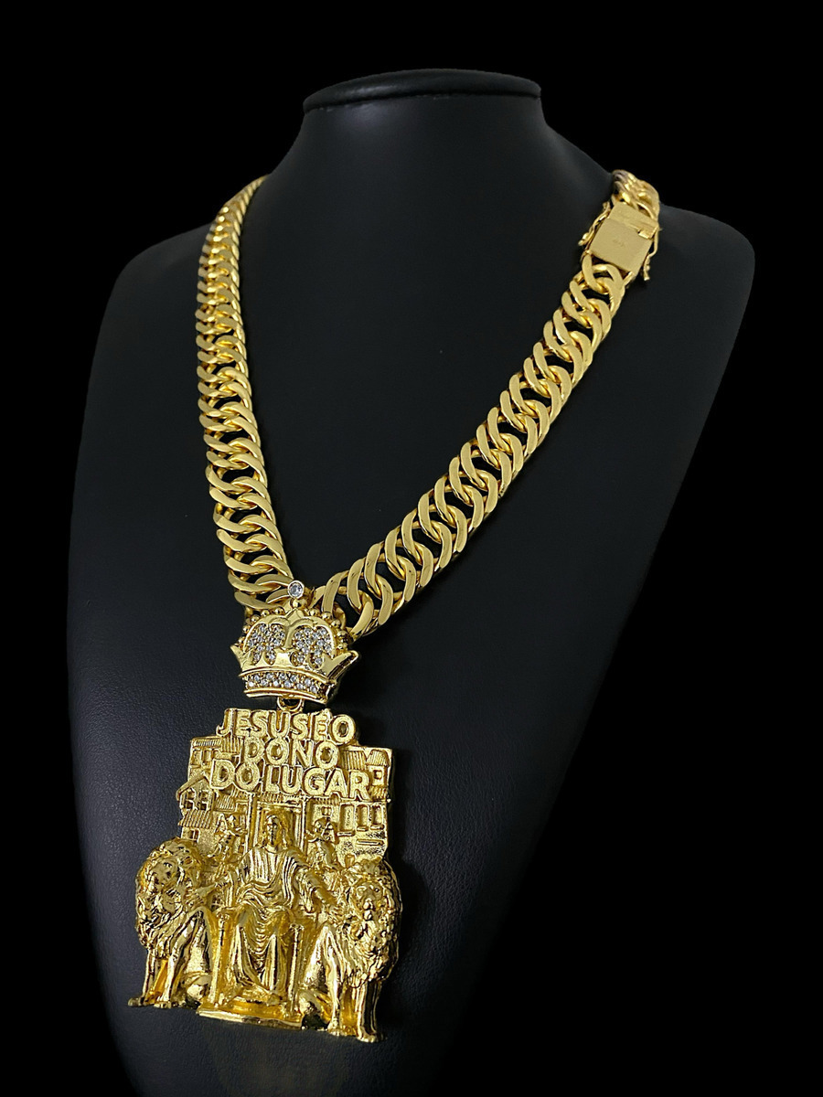 Cordão Grumet 15mm + Pingente Jesus É O Dono Banhado Ouro 18k