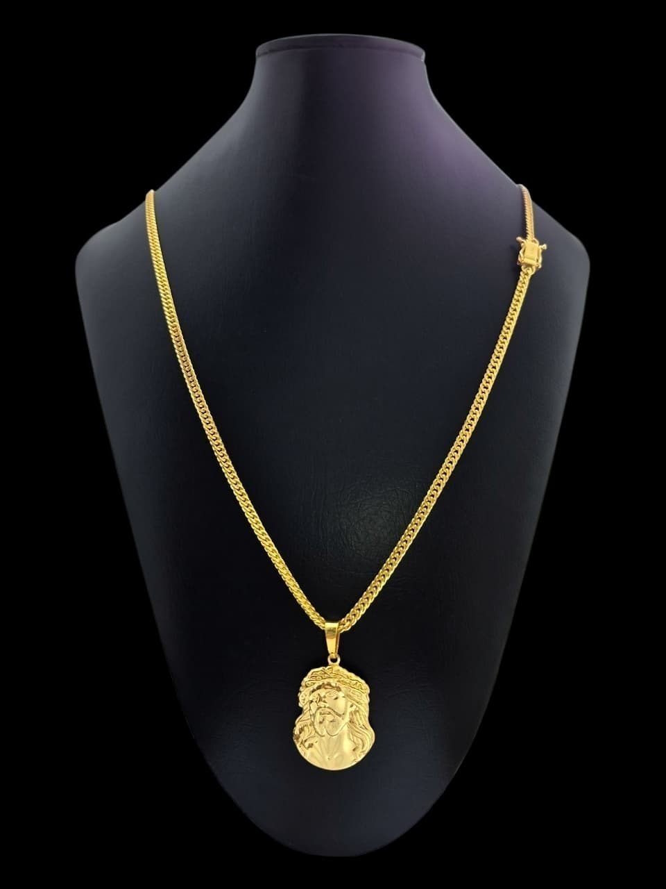 Cordão Grumet 3mm + Pingente Rosto De Cristo Banhado A Ouro 18k