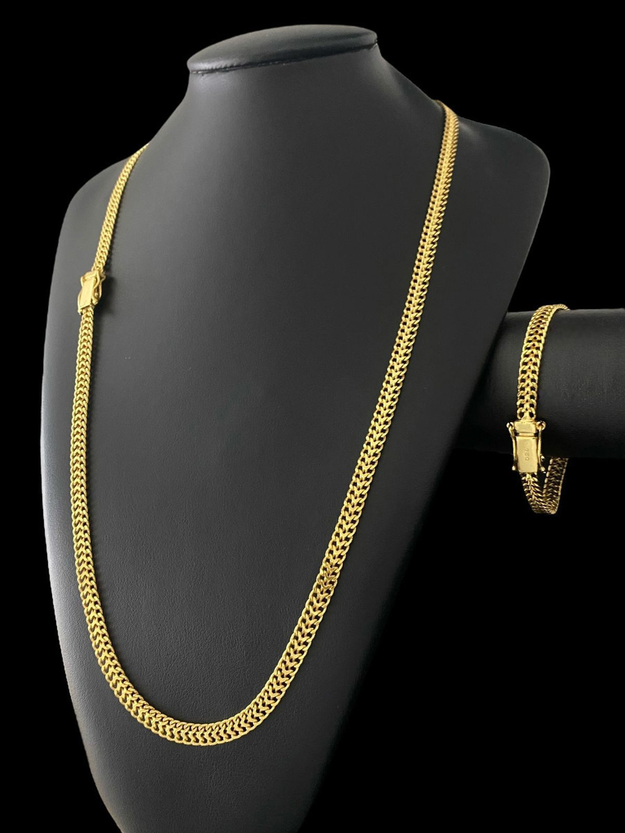 Cordão Lacraia 6mm + Pulseira Banhado A Ouro 18k