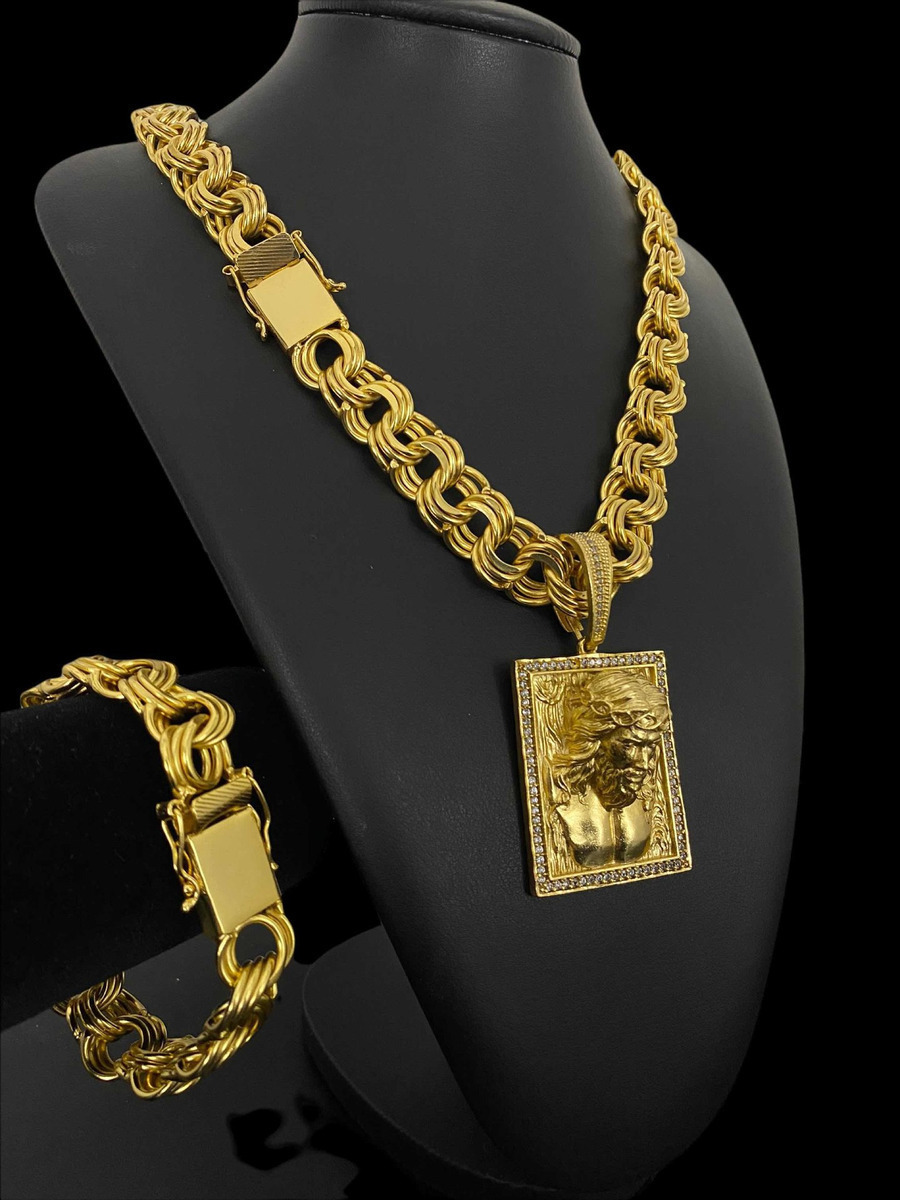 Kit Friso Triplo 18mm + Pingente Banhado Ouro 18k