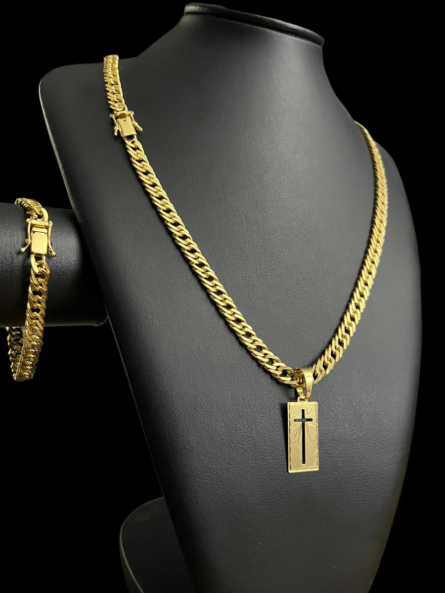 Kit Grumet 7mm + Pingente Cruz Vazada Banhado A Ouro 18k