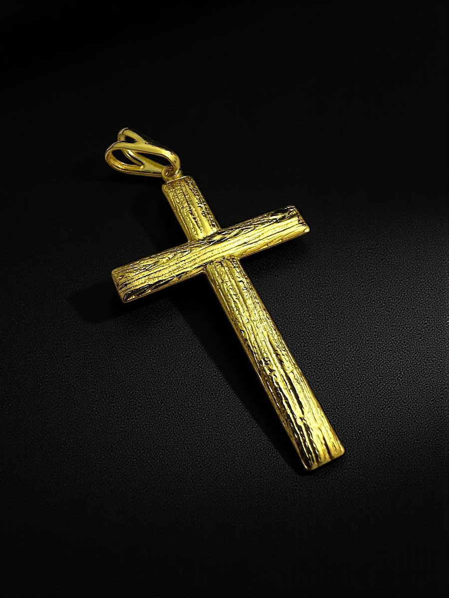 Pingente Cruz Madeira M Banhado A Ouro 18k Masculino