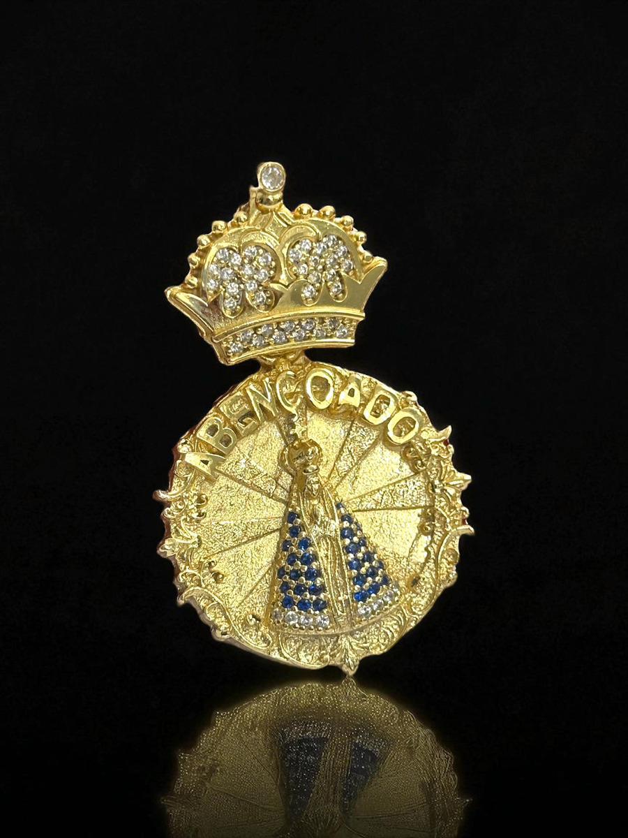 Pingente Nossa Senhora Abençoado Pequeno Banhado A Ouro 18k