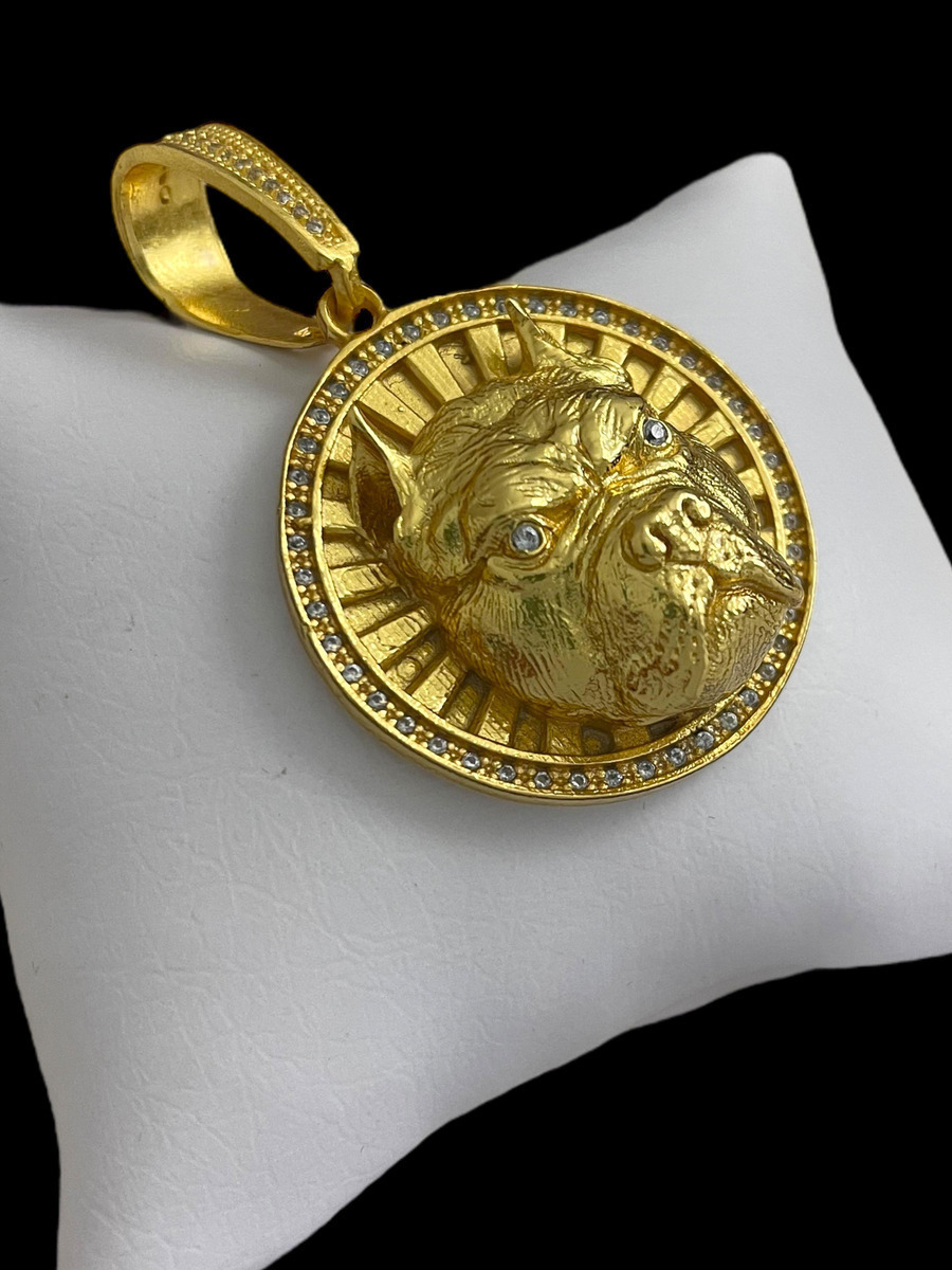 Pingente Pitbull Redondo G 100% Moeda Antiga