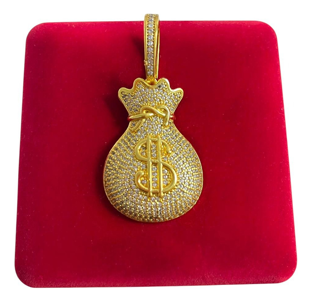 Pingente Saco De Dinheiro Fechada Banhado A Ouro 18k